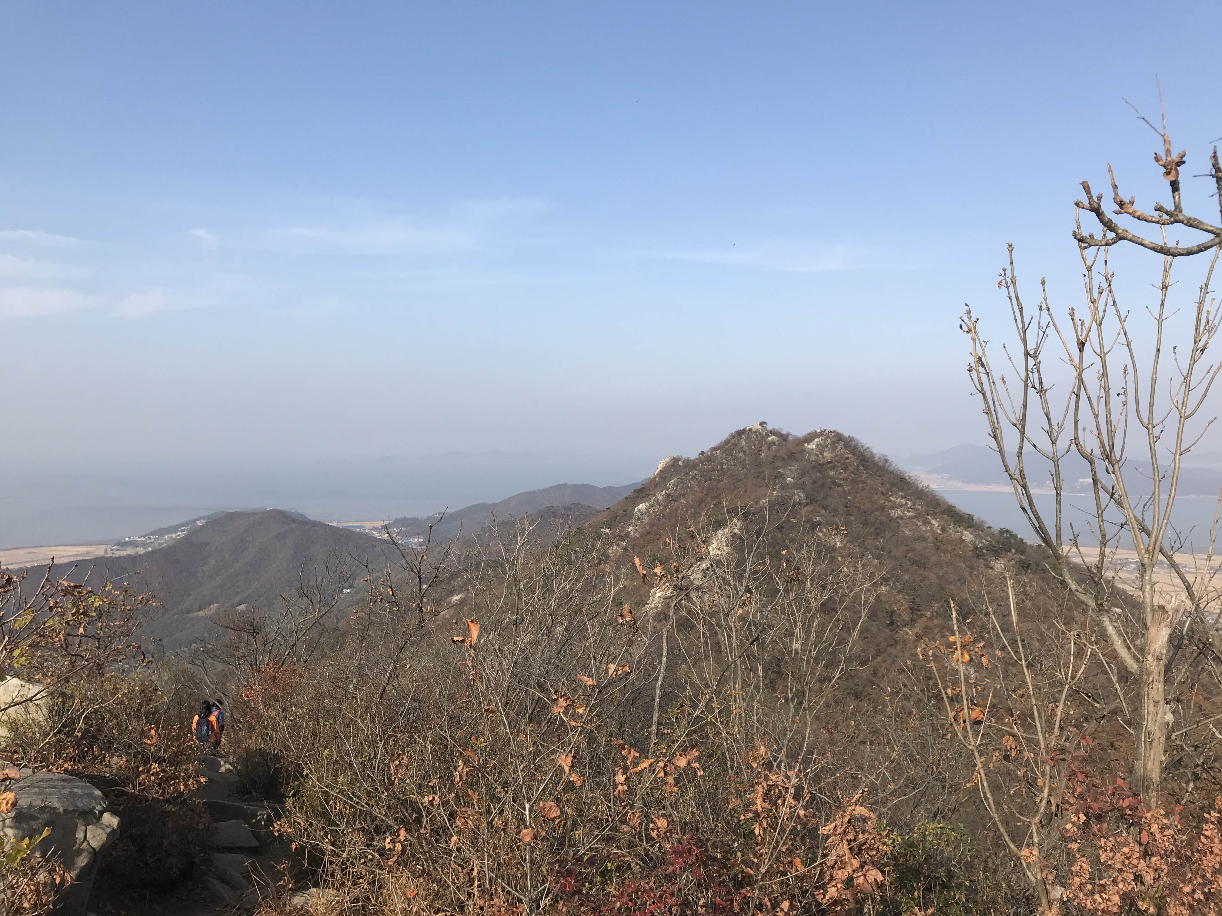 본격적으로 바위능선길로 들어서니 바다(갯벌) 그리고 평야와 산의 하모니가 눈 앞에 펼쳐집니다. 그리고 산 능선에 깊어진 가을의 물결입니다.