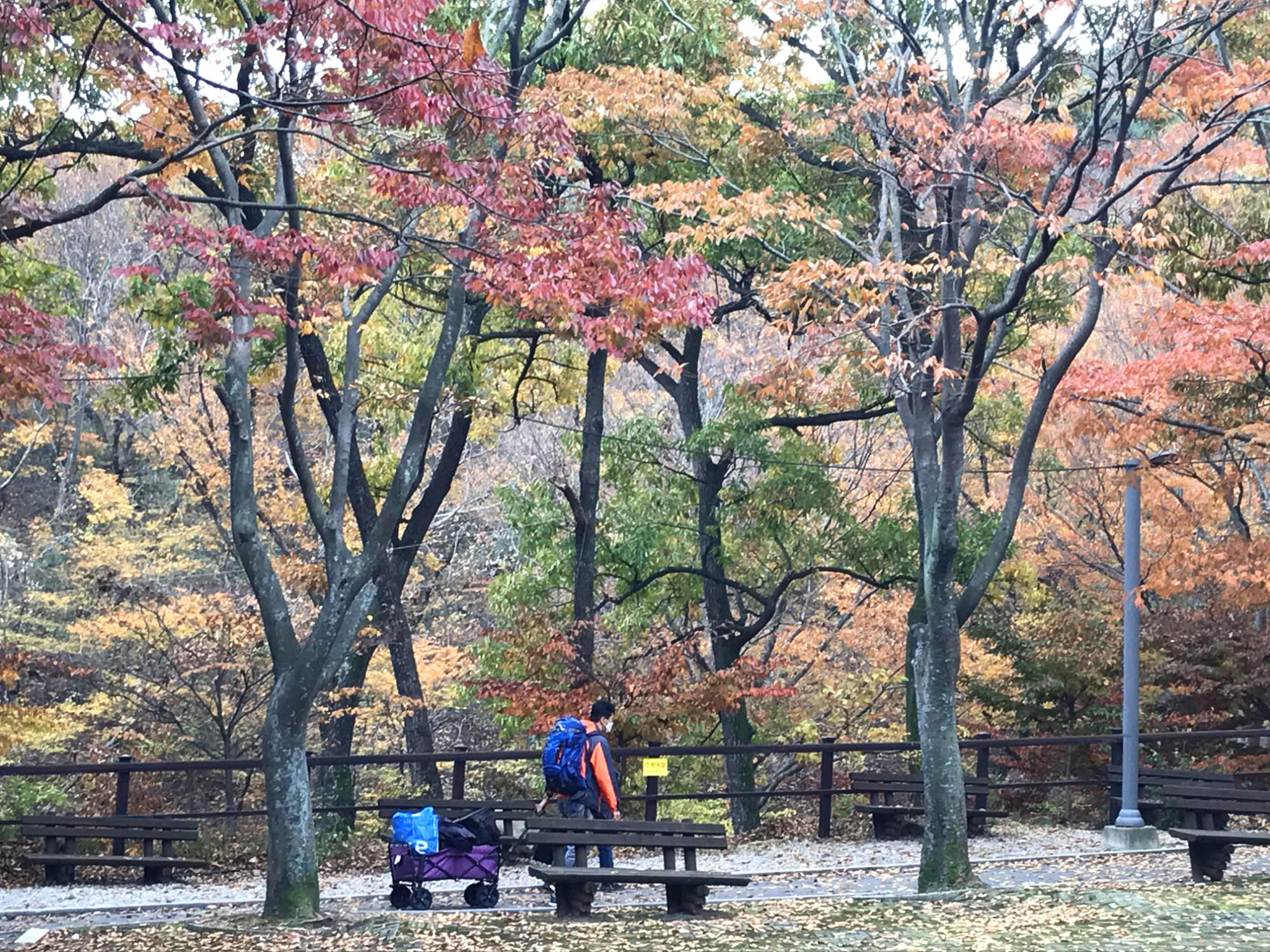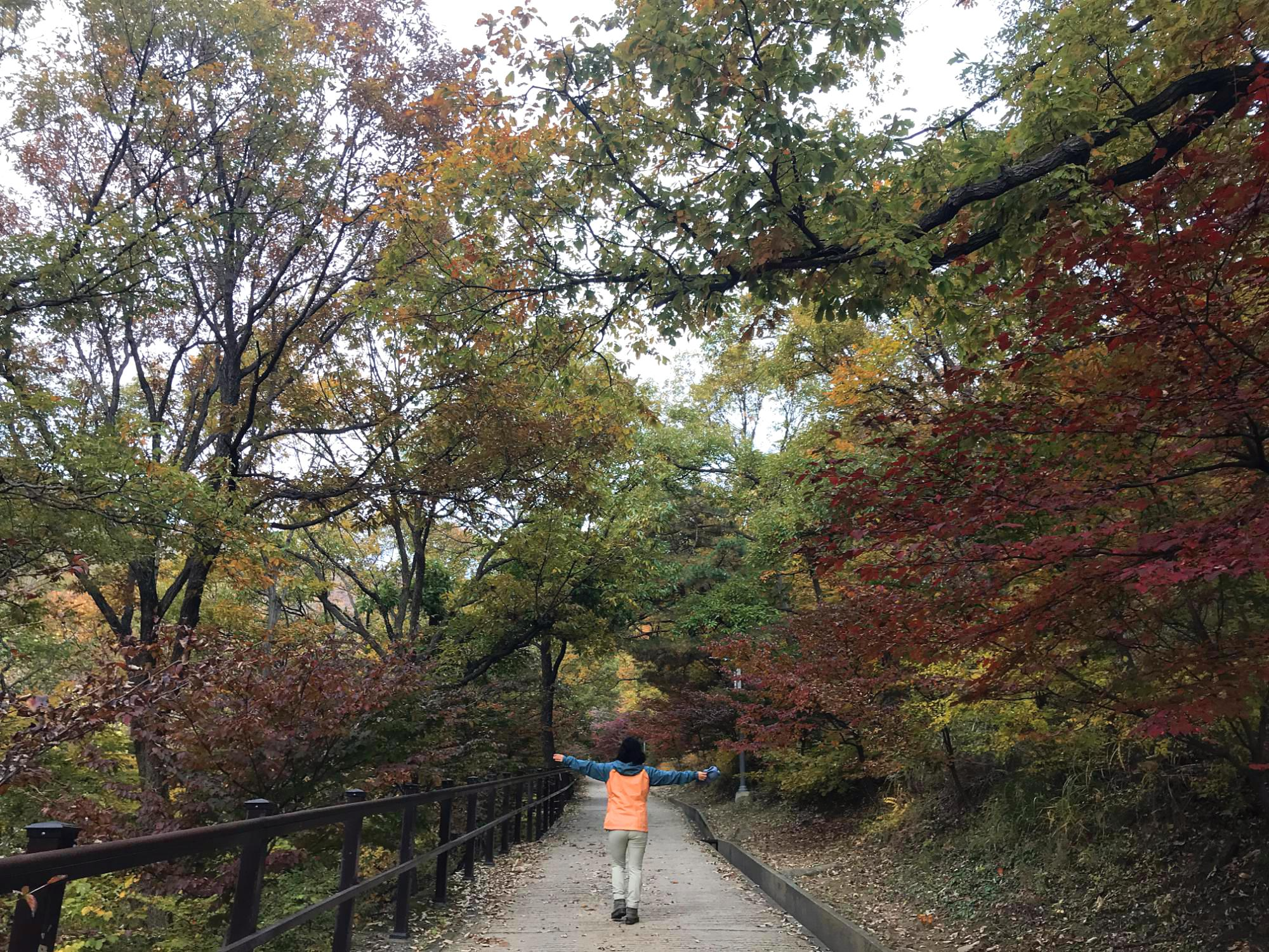 가을의 끝 자락입니다. 올해는 비가 오지 않아 단풍잎이 많이 말랐다고 하지만 그래도 너무 예쁘네요. 음력으로 9월이니 만추(晩秋)입니다. 그리고 이른 아침이라 그런지 사람이 없어 더욱더 좋습니다.