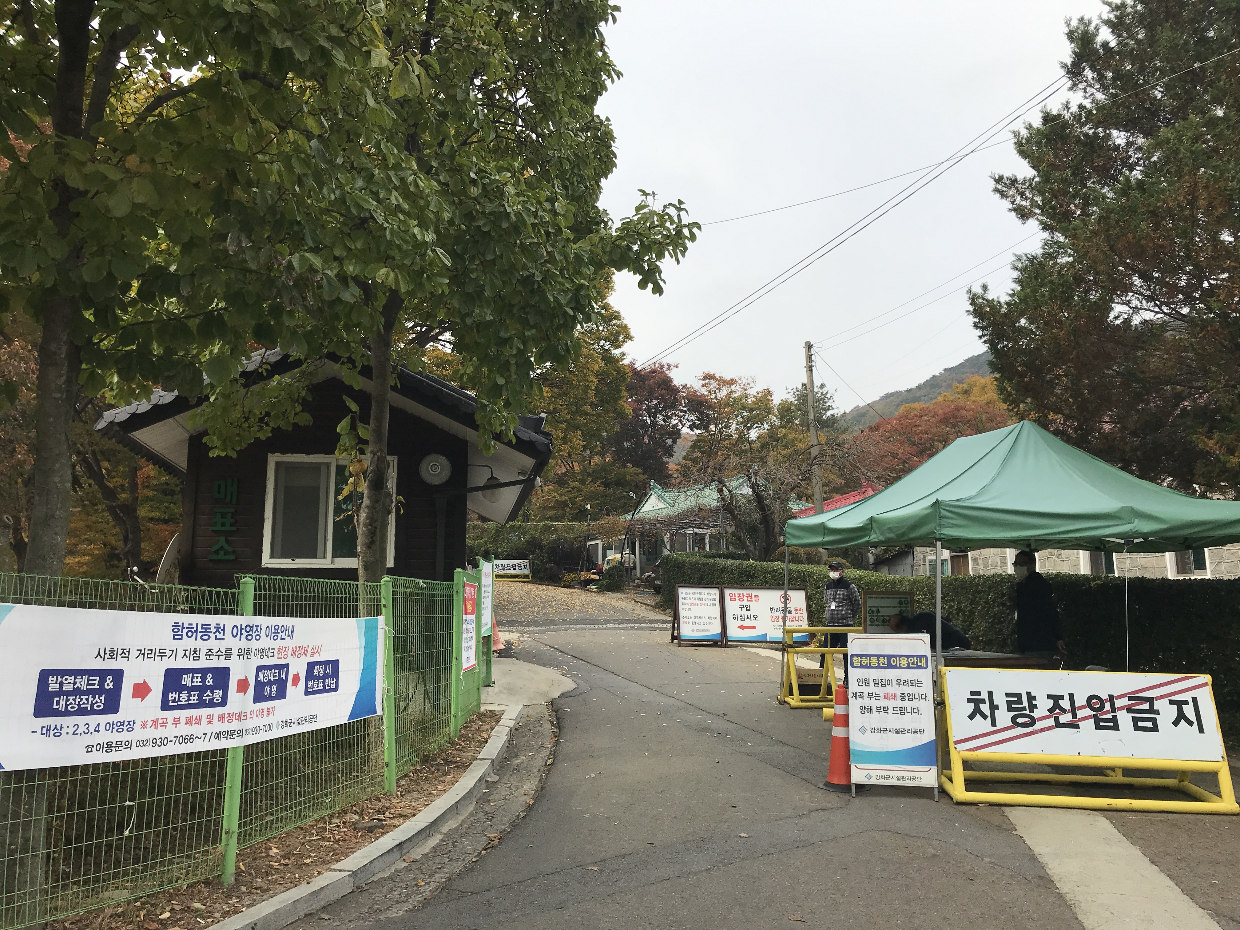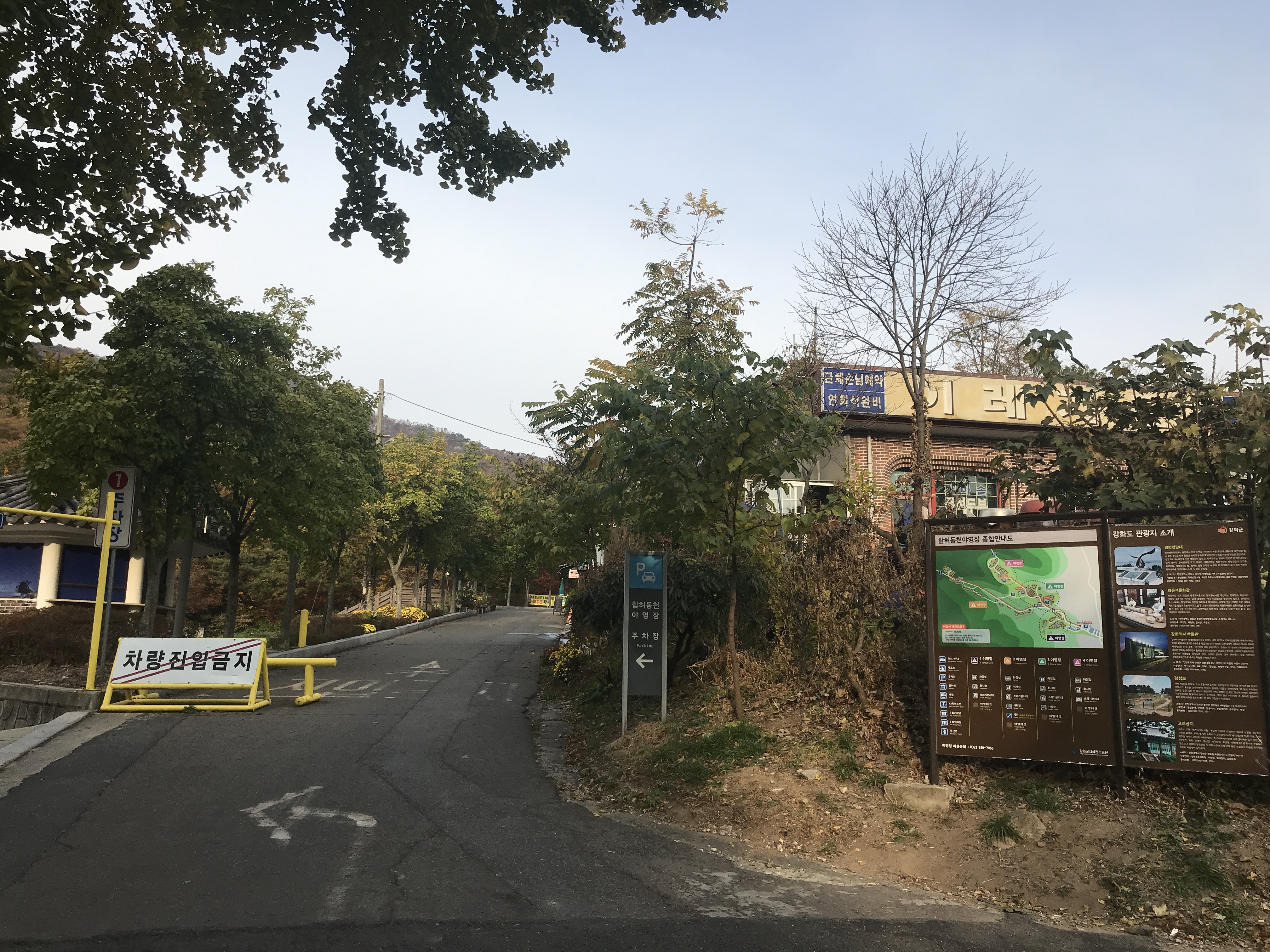 마니산 함허동천 코스는 함허동천 야영장을 지나쳐야 합니다. 주말 강화도 나들이기 때문에 교통체증을 생각해서 아침 일찍 출발해서 함허동천 주차장에 오전 8시 10분 정도 도착했습니다. 산행 전 화장실 한 번 들려주고 야영장 매표소를 향해 올라갑니다.