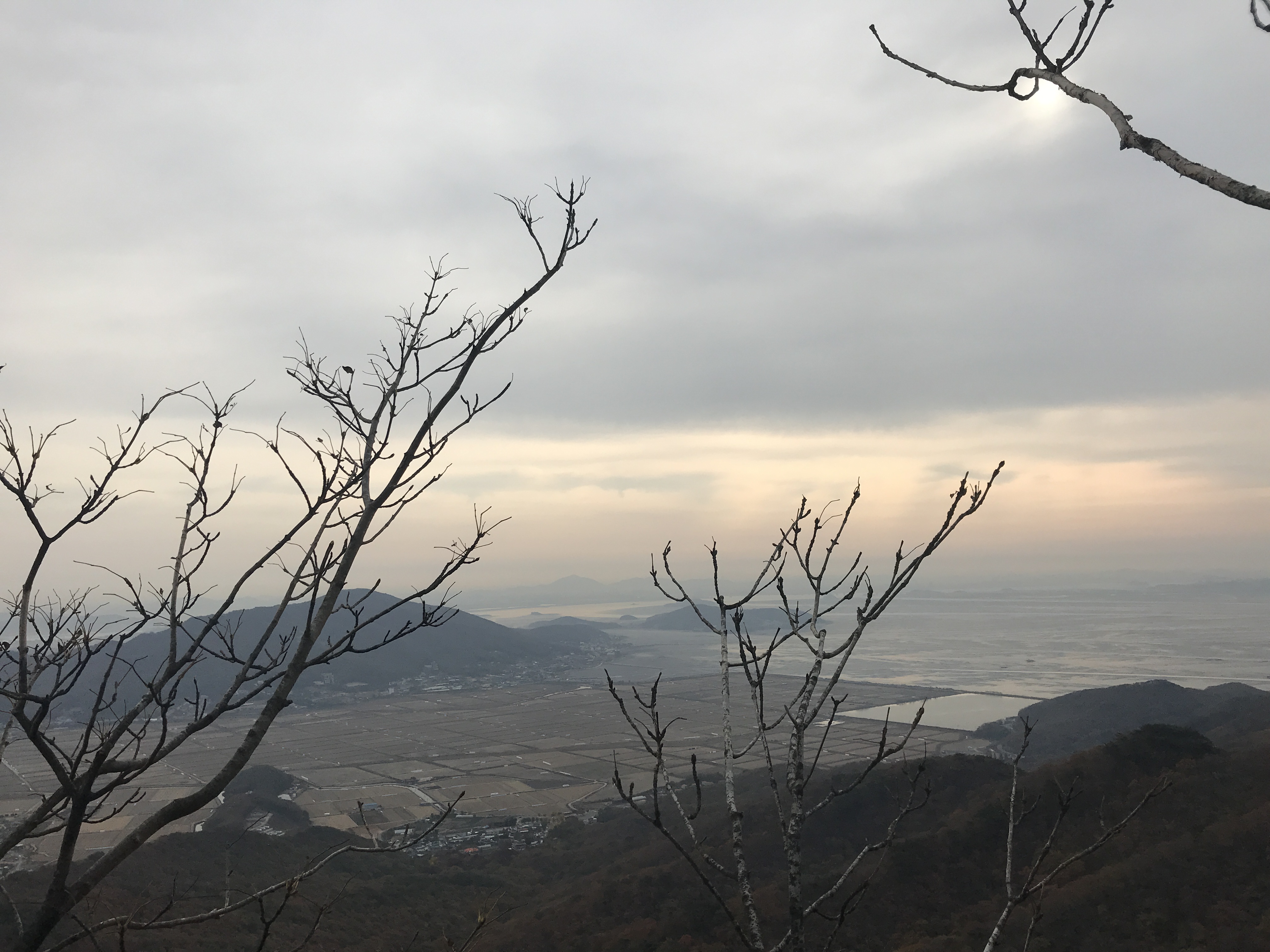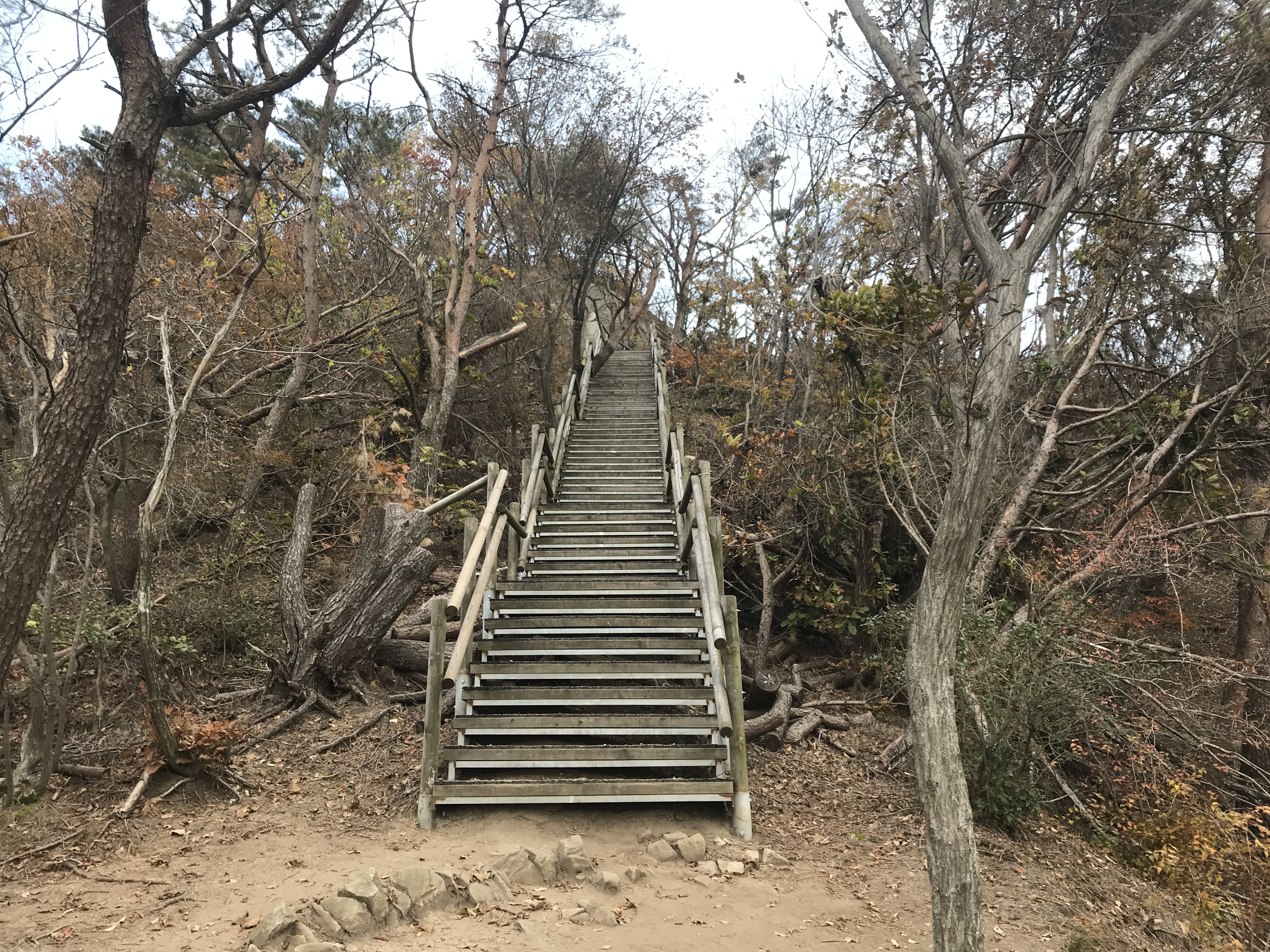 제법 올랐나 봅니다. 계단을 오르니 나무들 사이로 아래 풍경들이 보이기 시작합니다. 산에 오기 전 날씨 예보에서 약간 흐림이라고 보고 왔지만 살짝 아쉬운 마음은 어쩔 수 없습니다. 그래도 한쪽은 파란 하늘을 보여주기 시작해서 구름이 걷히기를 기대를 해봅니다.