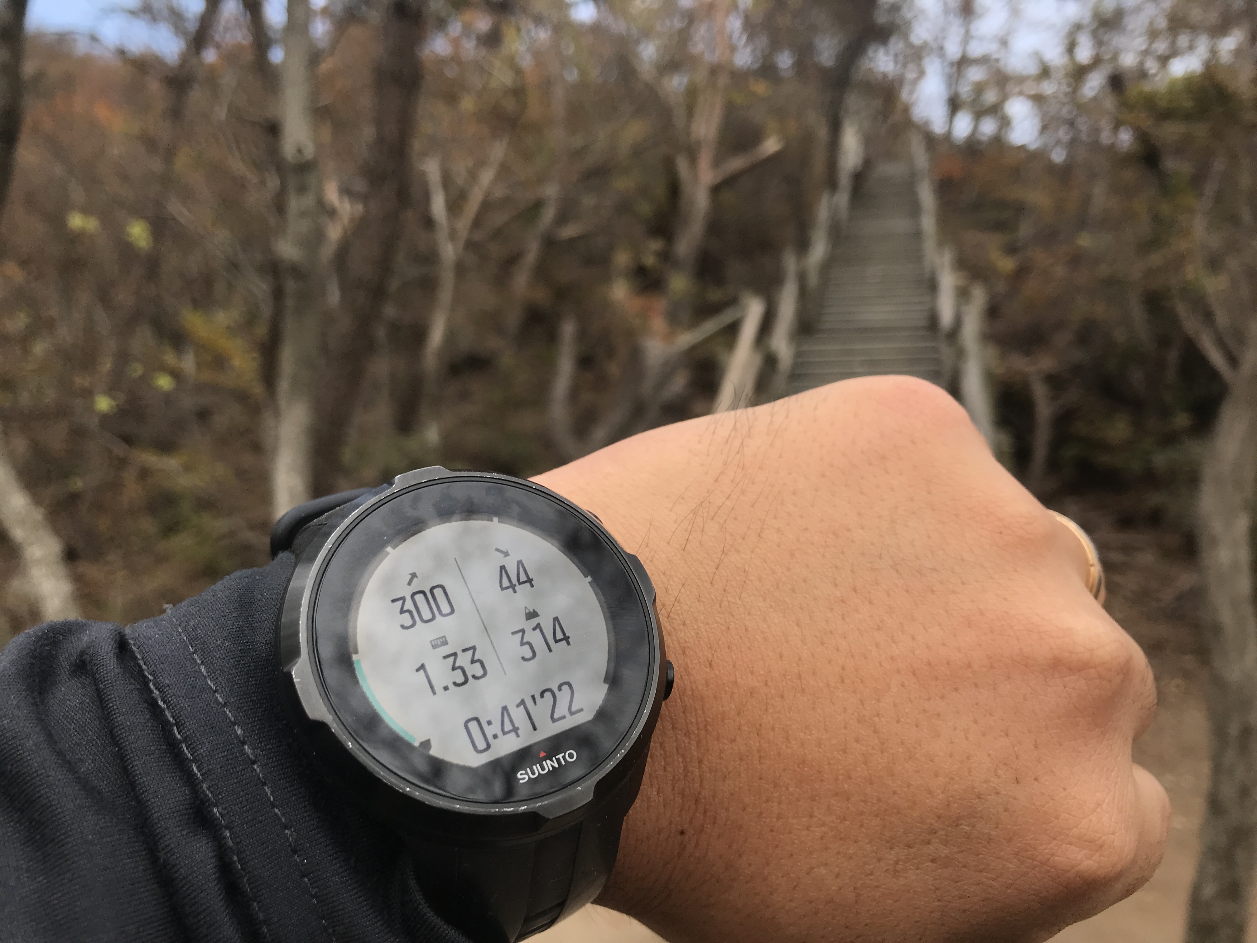 계곡길과 능선길이 합류하면 바로 계단이 나옵니다. 여기까지 40분 정도 걸렸네요.