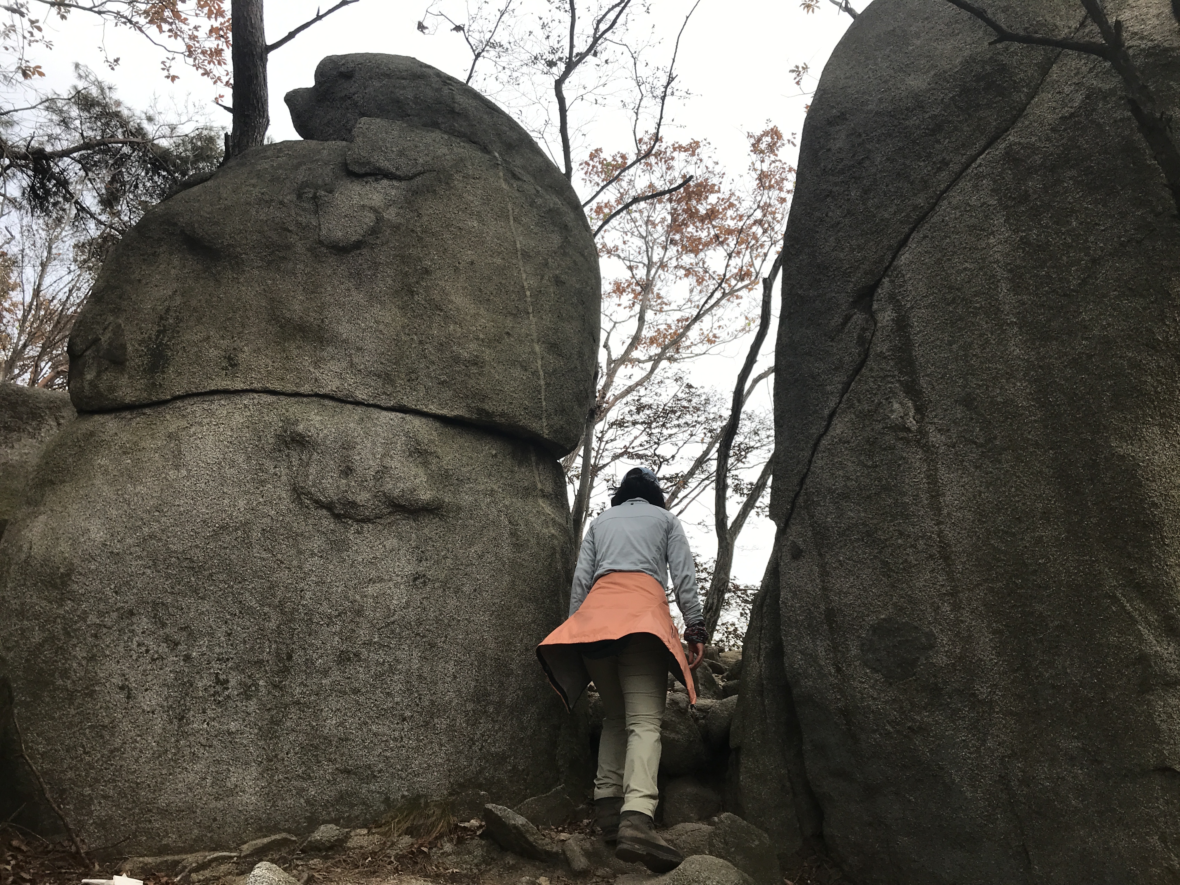 완만하게 오르는 듯하면서도 중간중간 바위길도 있고, 낙엽이 많이 떨어져서 살짝 미끄럽기도 하니 주의가 필요합니다. 그래도 오랜만에 상쾌한 공기 마시며 오르는 길을 힘들지만은 않습니다.