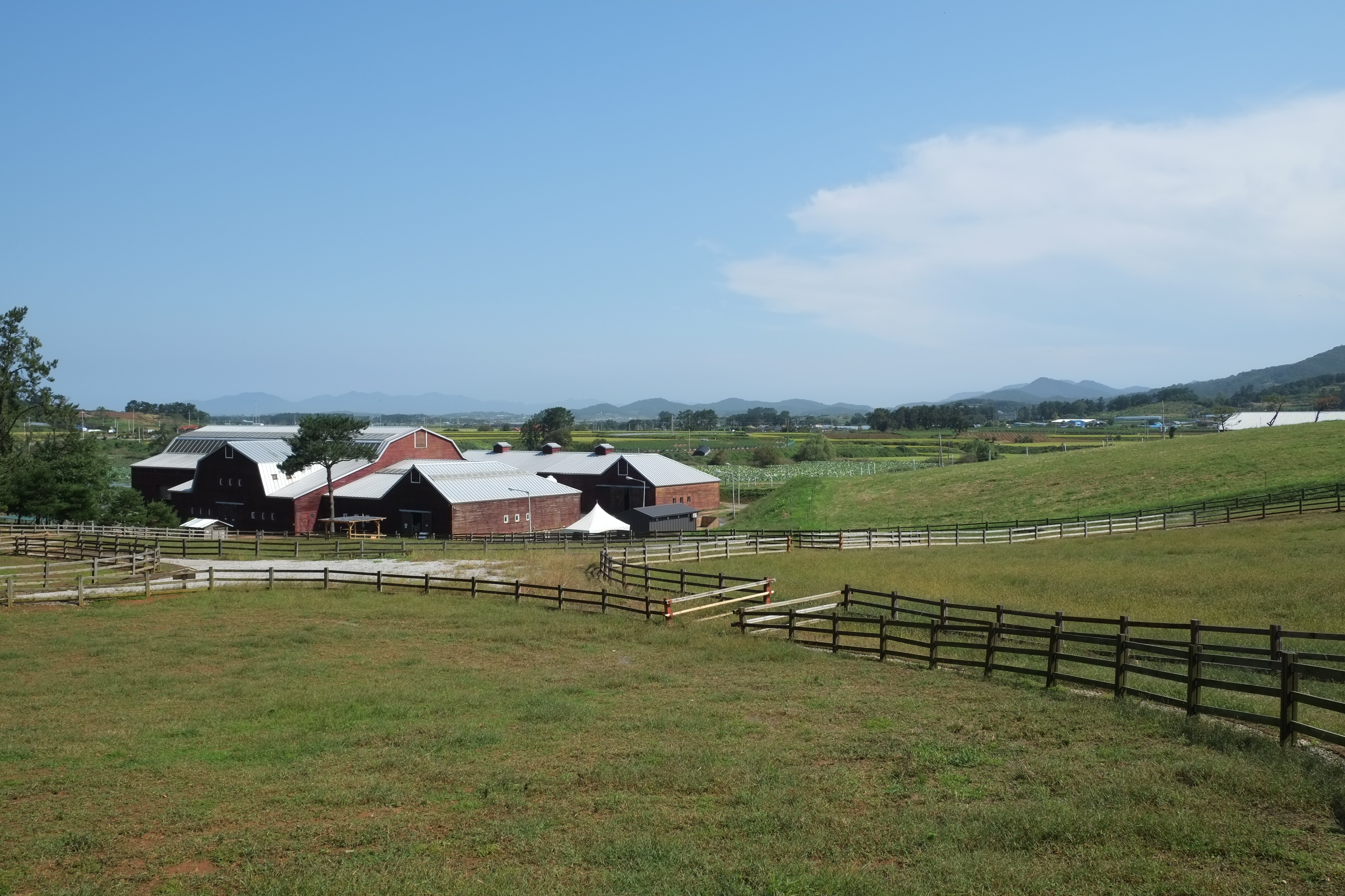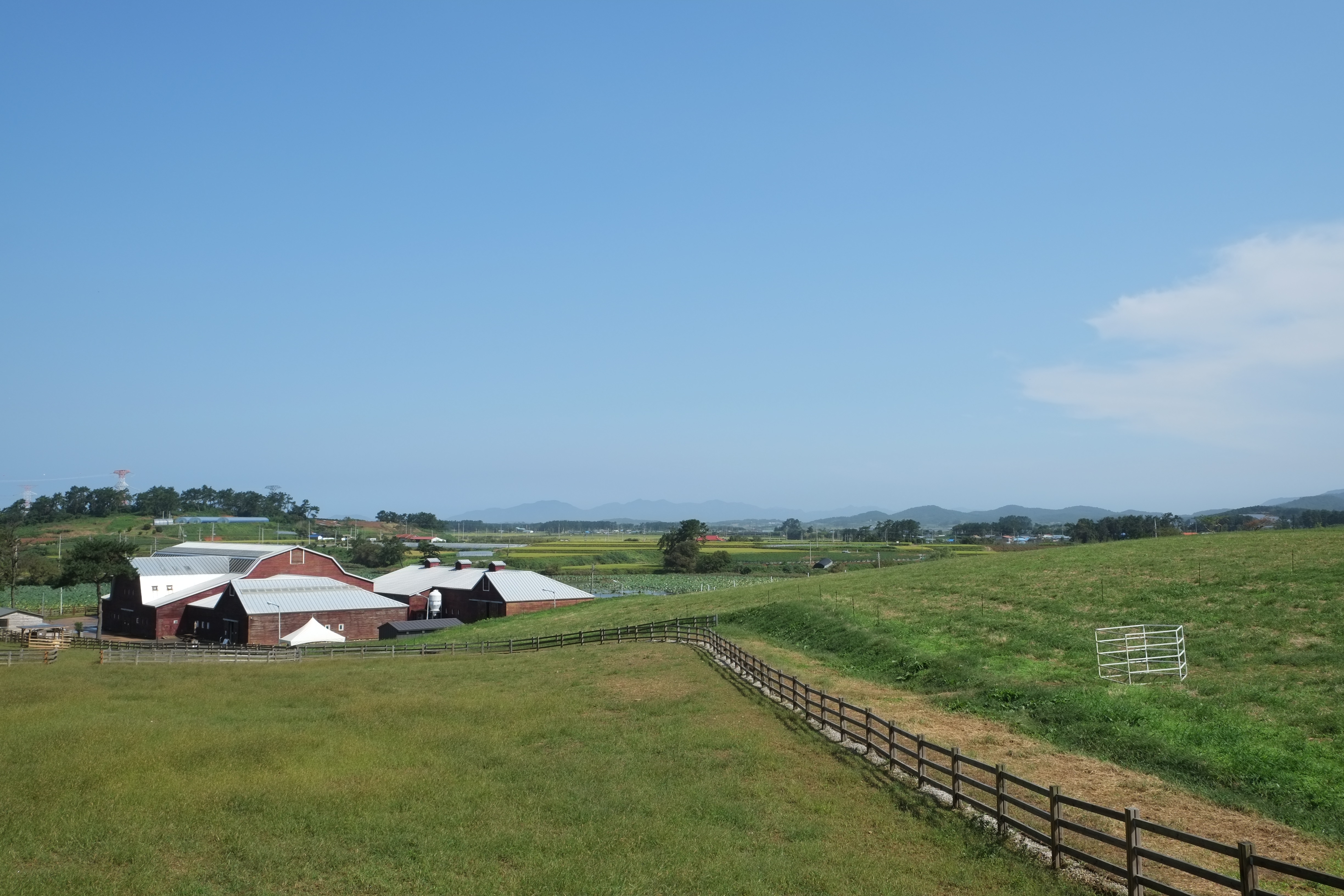 울타리가 쳐진 목장 길을 따라 가을 바람을 맞으며 걷는 길이 참 좋습니다. 요즘 도시에 공원이 잘 조성되어 있지만 주변에 고층 건물 하나 없는 목가적 풍경을 보니 눈도 시원하고 자연스레 걸으면서 힐링이 됩니다.