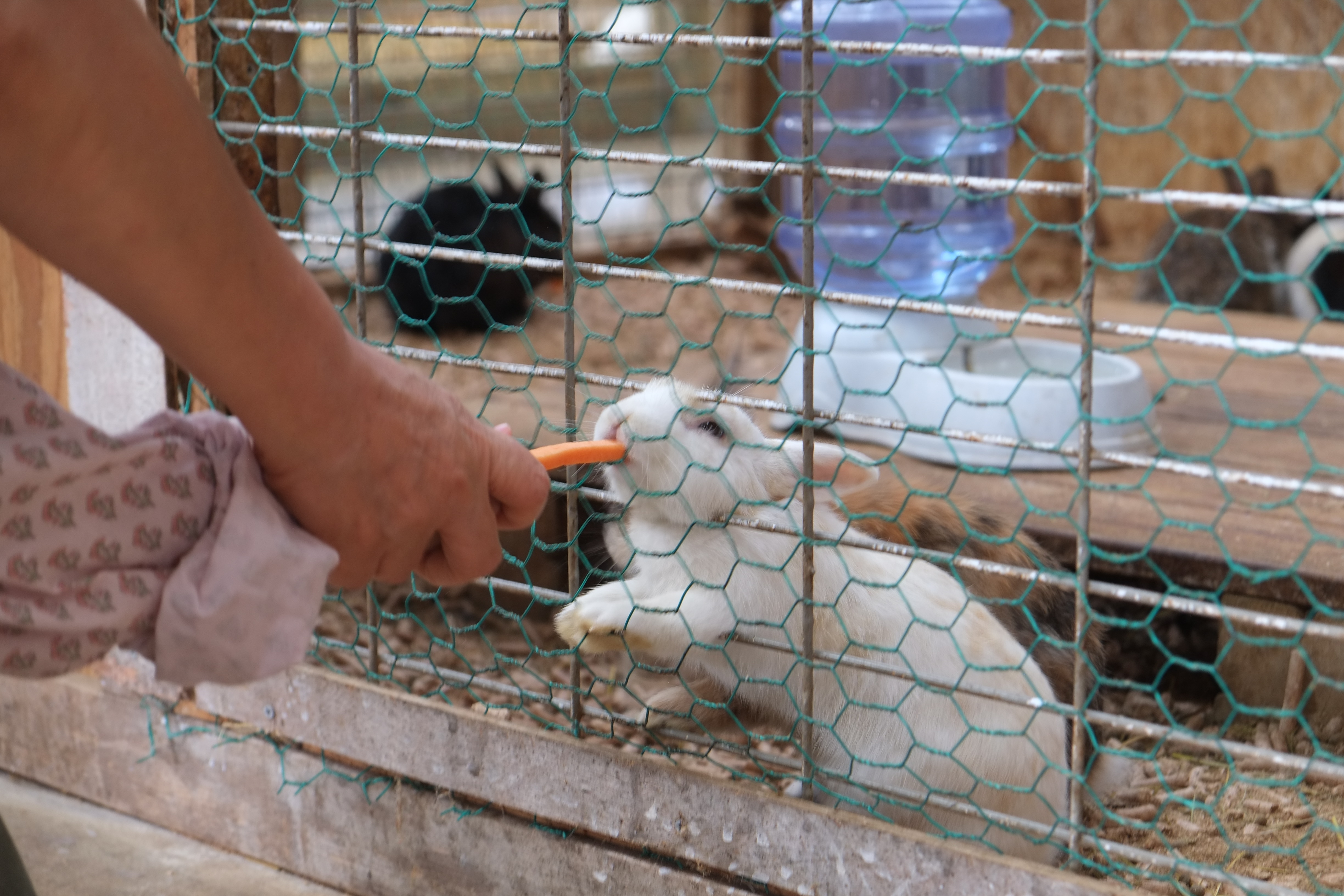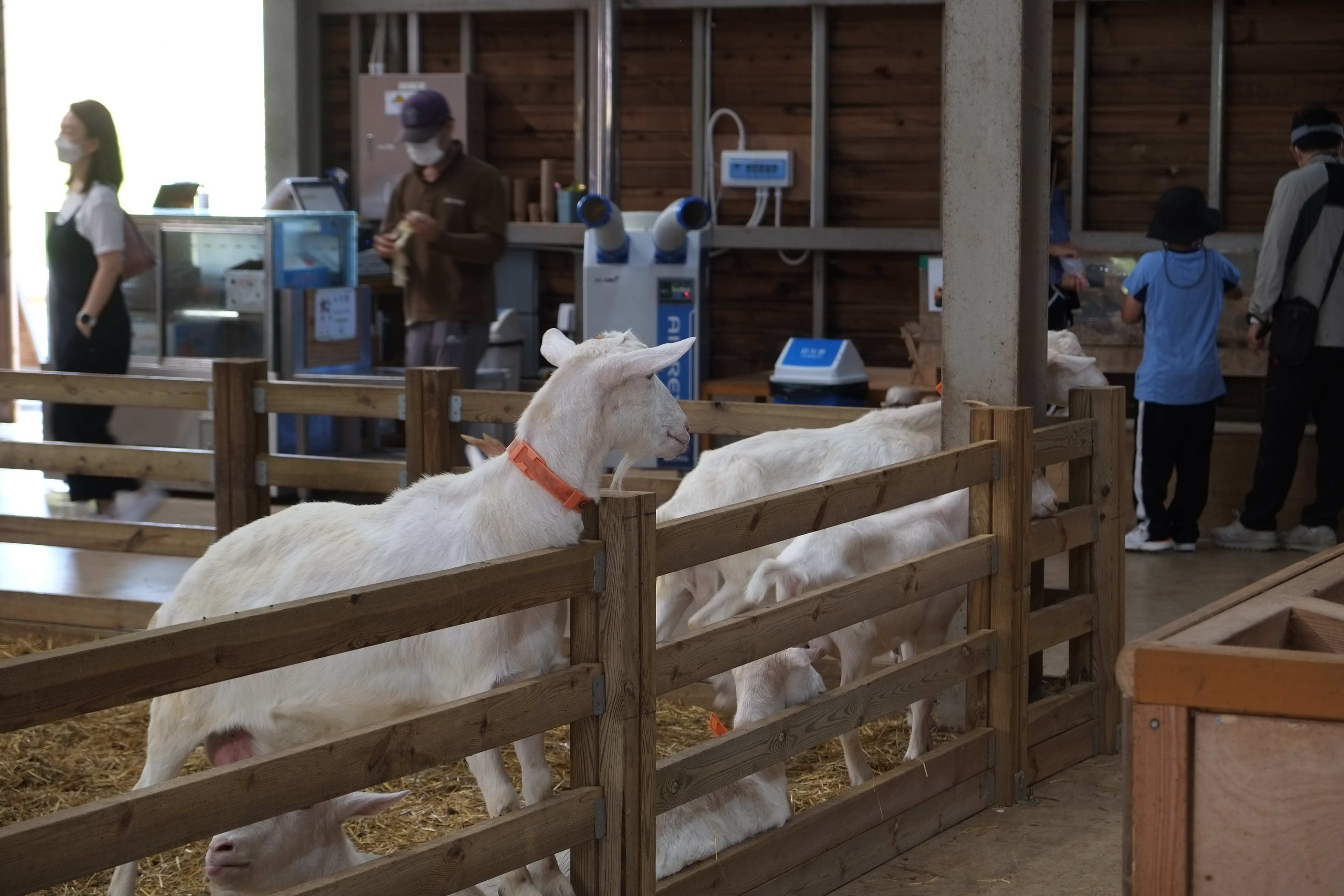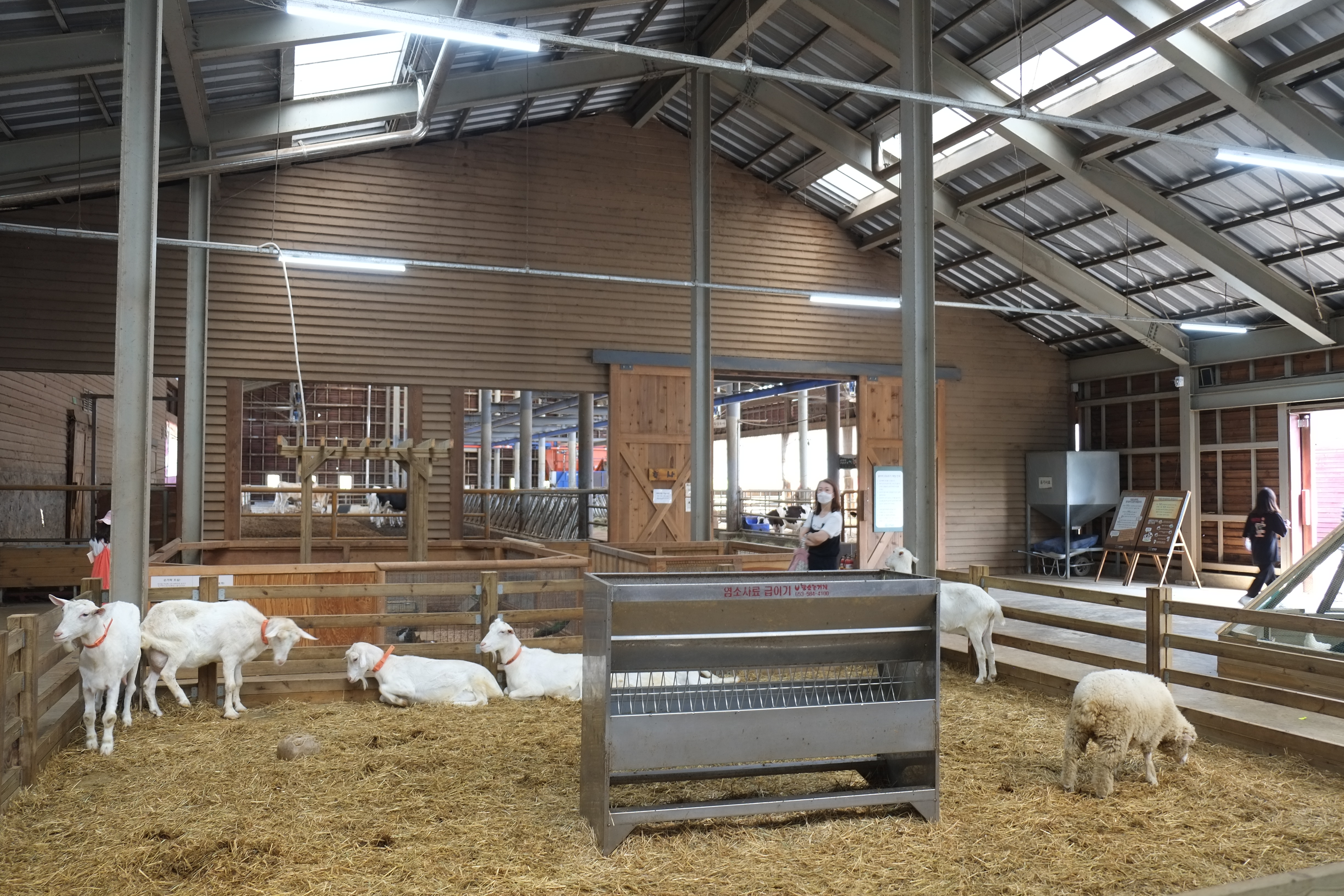 가축들이 있는 축사로 들어가면 자판기에서 먹이를 사서 체험을 할 수 있습니다. 먹이를 주는 아이들도 먹는 동물들의 모습 모두 사랑스럽습니다.